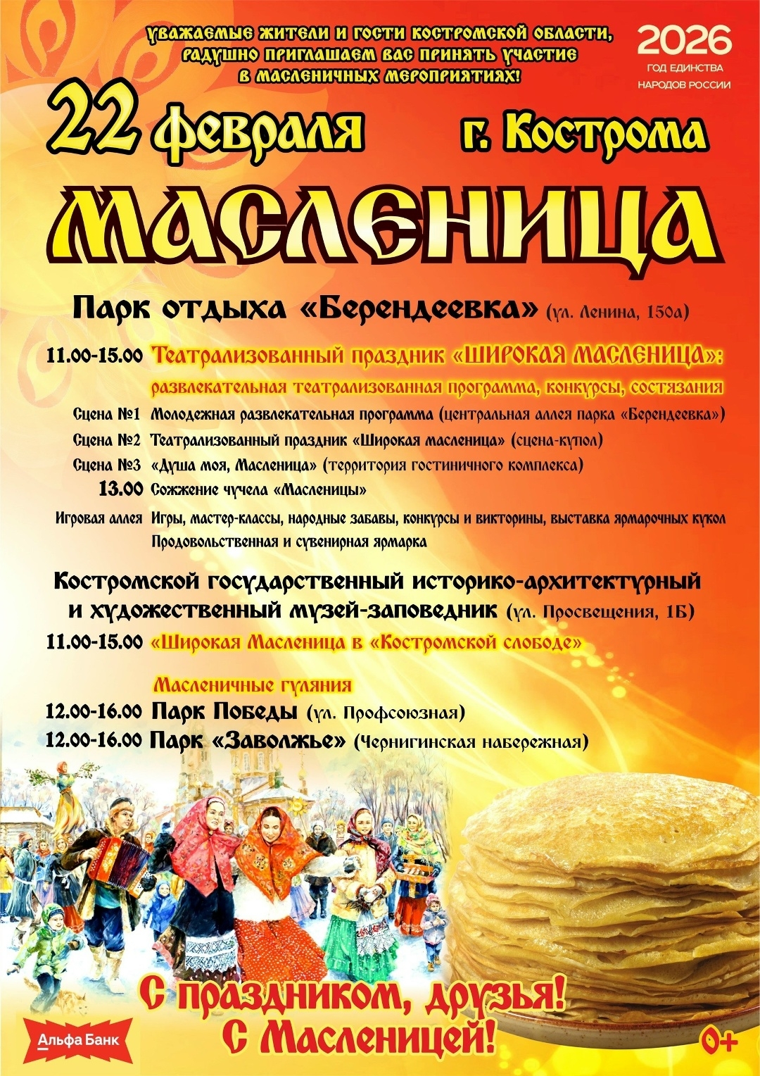 22 февраля в парках Костромы пройдут масленичные гуляния