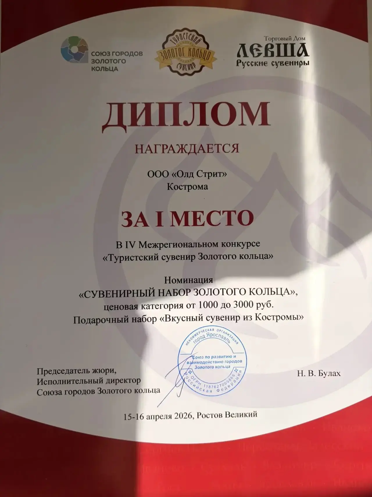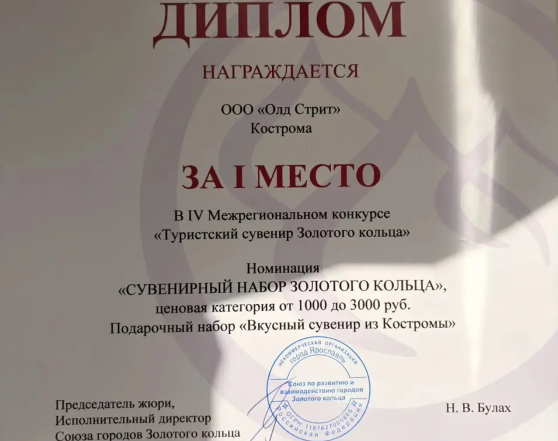 1 место - ООО «Олд Стрит», Кострома, подарочный набор «Вкусный сувенир из Костромы»