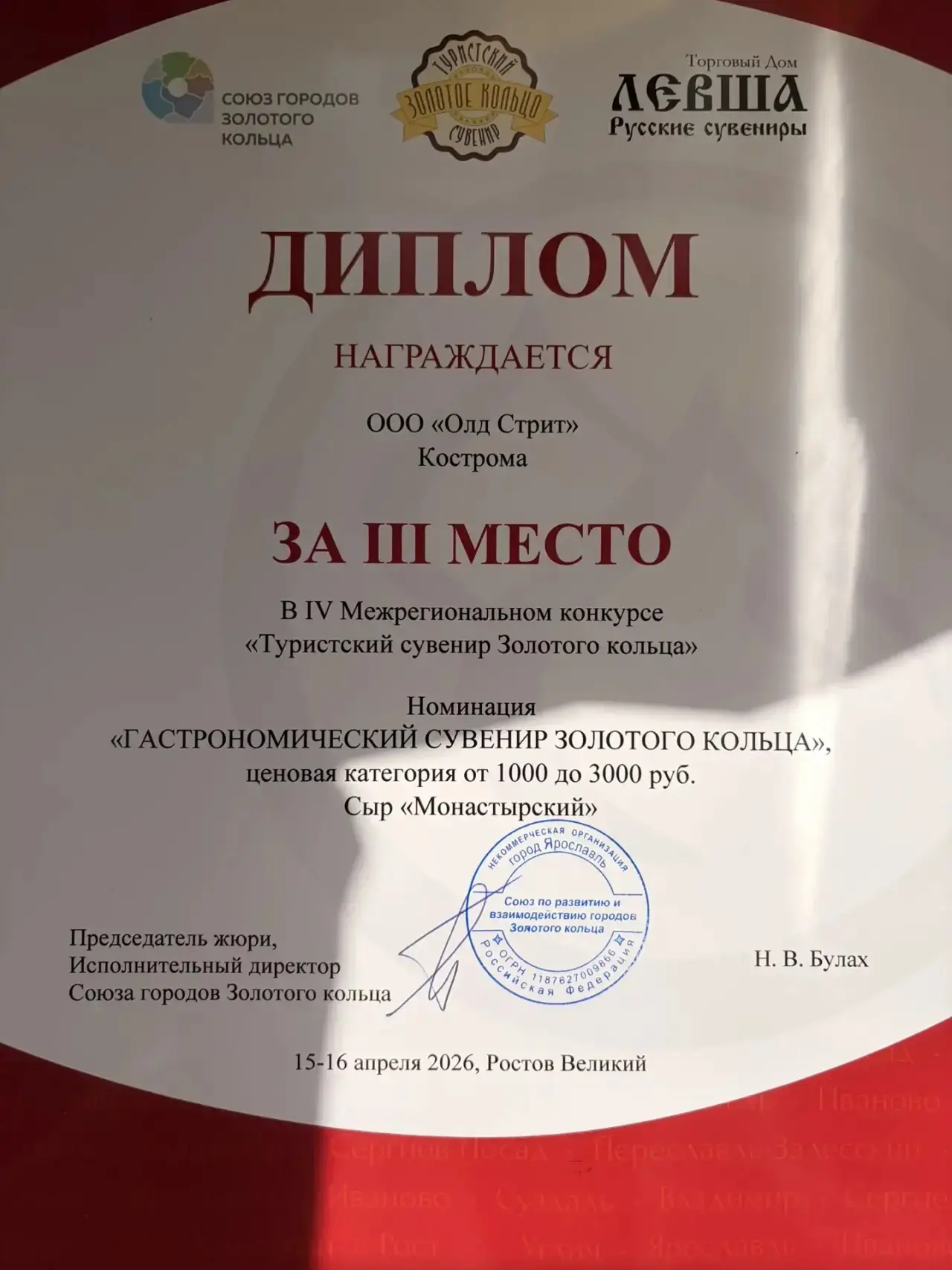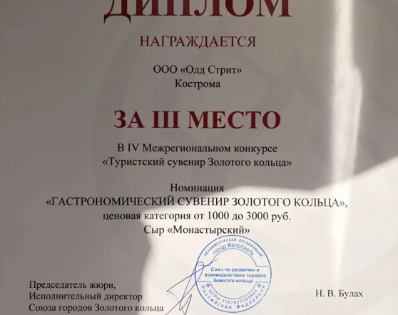 3 место - ООО «Олд Стрит», Кострома, сыр «Монастырский»