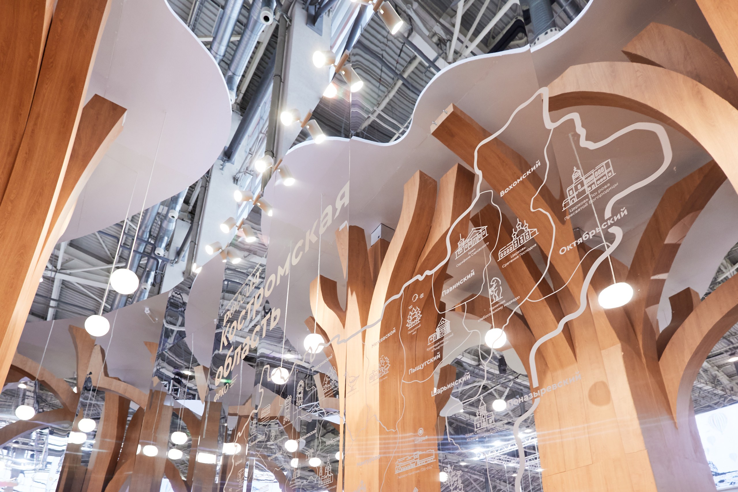 Стенд Костромской области, представленный на международной выставке-форуме «Россия» на ВДНХ в 2023-2024 гг., получил высокую оценку не только со стороны миллионов гостей, но и профессионального сообщества. По итогам 2025 года проект был отмечен рядом престижных наград от ведущих российских фестивалей в сфере дизайна, событийной индустрии и креативной экономики, таких как «СРЕДА», bema!, G8. Концепция и дизайн стенда были разработаны агентством «Лира» по заказу некоммерческой организации «Фонд развития Костромской области».