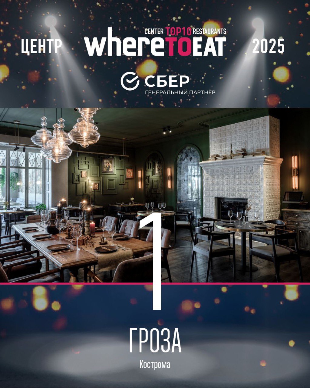 Ресторан «Гроза» — первый среди лучших в Центральной России, событие, которым гордится вся Кострома!