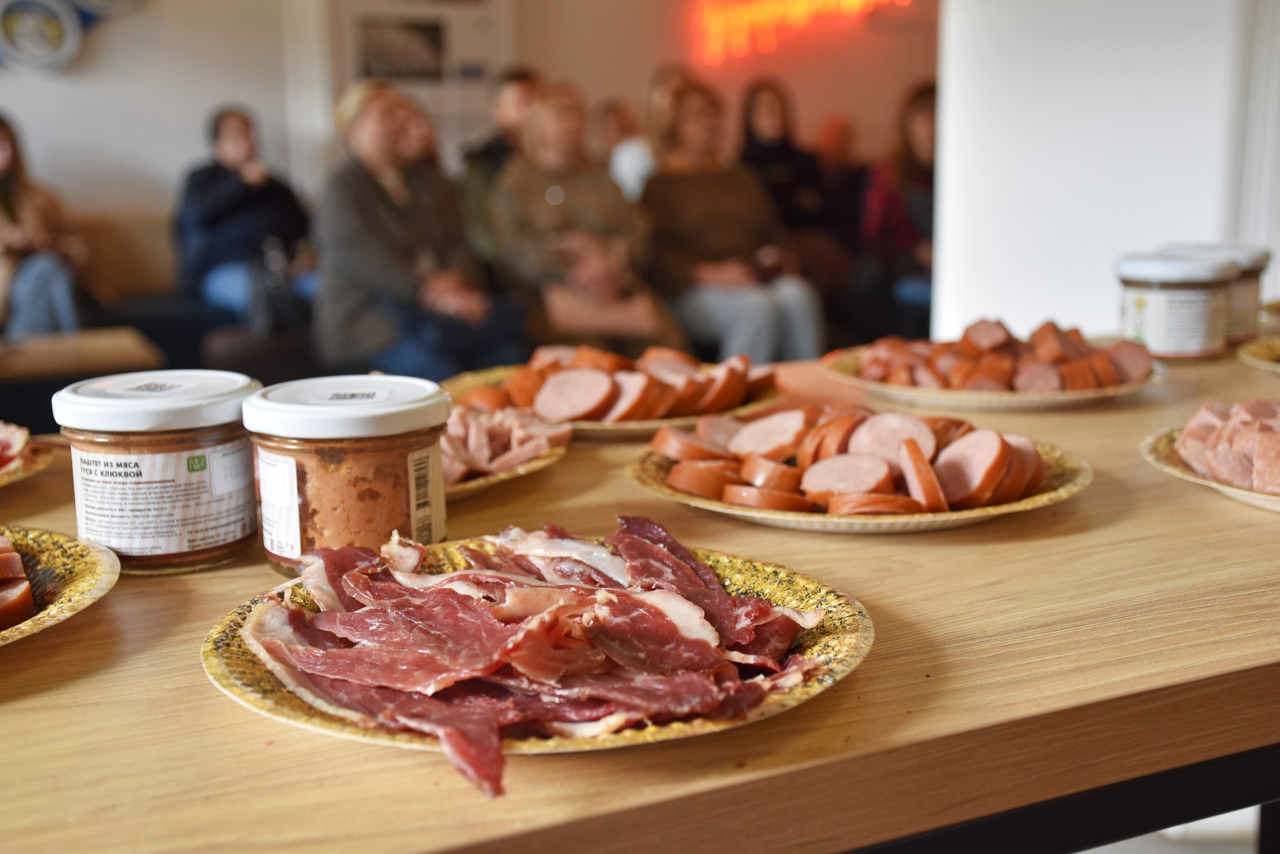 После презентации гостям предложили продегустировать паштеты из мяса и печени гуся, новые сорта колбас, а также сыровяленое мясо, которые каждый оценил по достоинству.