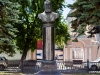 - Представляет собой бронзовый бюст на высокой колонне, основание которой обвито чеканным лавровым венком. Сам Островский изображен серьезным, вдумчивым, его взгляд исполнен творческой мысли.